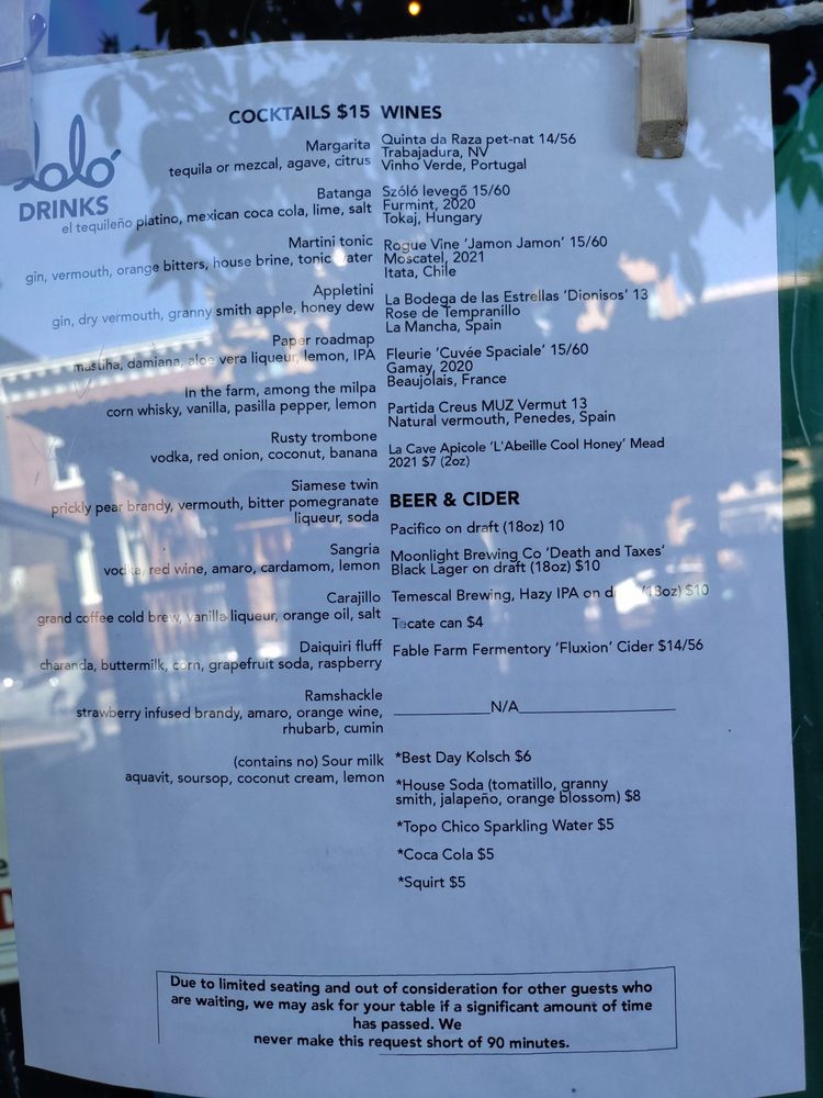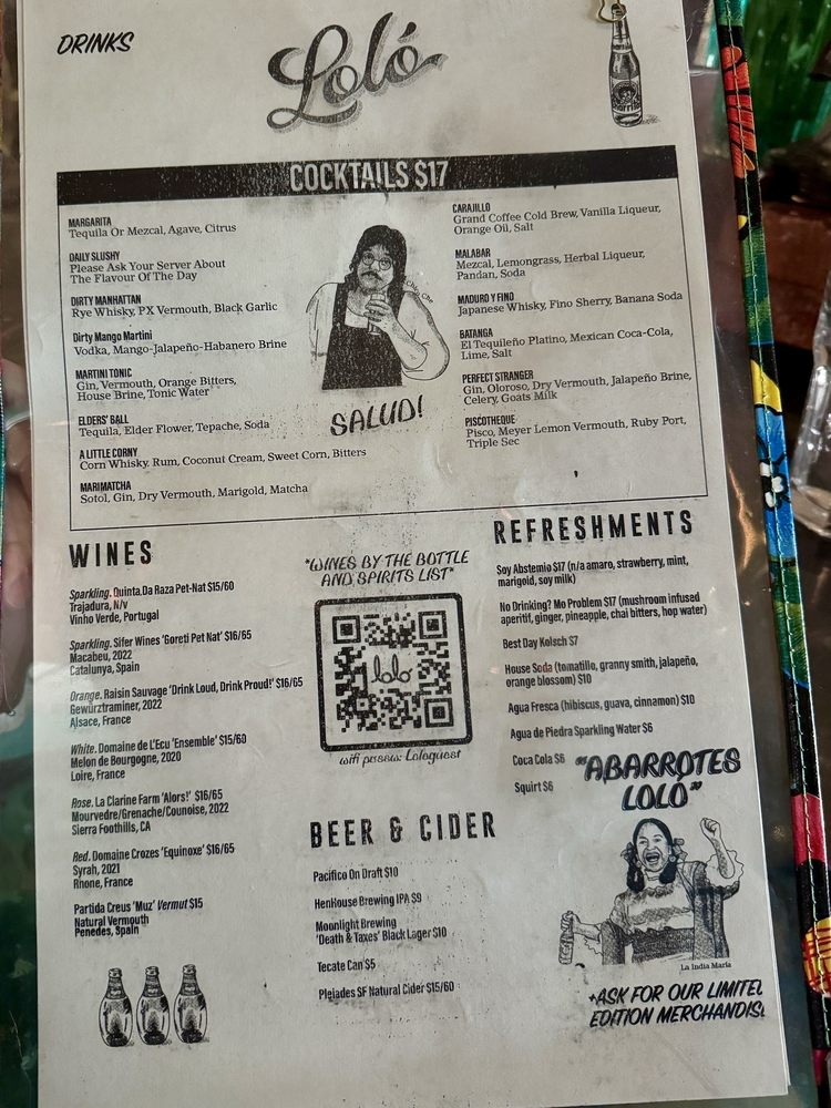 Loló, located on 974 Valencia St in San Francisco, offers a vibrant fusion of Jaliscan-Californian inspired cuisine. With options for delivery, takeout, and various dietary preferences catered to, including pescatarian, vegan, and vegetarian choices, Loló aims to satisfy a diverse range of tastes. Renowned for their refreshing margaritas, flavorful tacos, and creative dishes like the Taco Tropical and Beef Birria Quesadillas, Loló promises a memorable dining experience. The energetic atmosphere, colorful decor, and impeccable service further contribute to the restaurant's appeal. Whether you're looking for a refreshing drink or a satisfying meal, Loló stands out as a must-visit destination for those craving a unique Mexican dining experience in San Francisco.